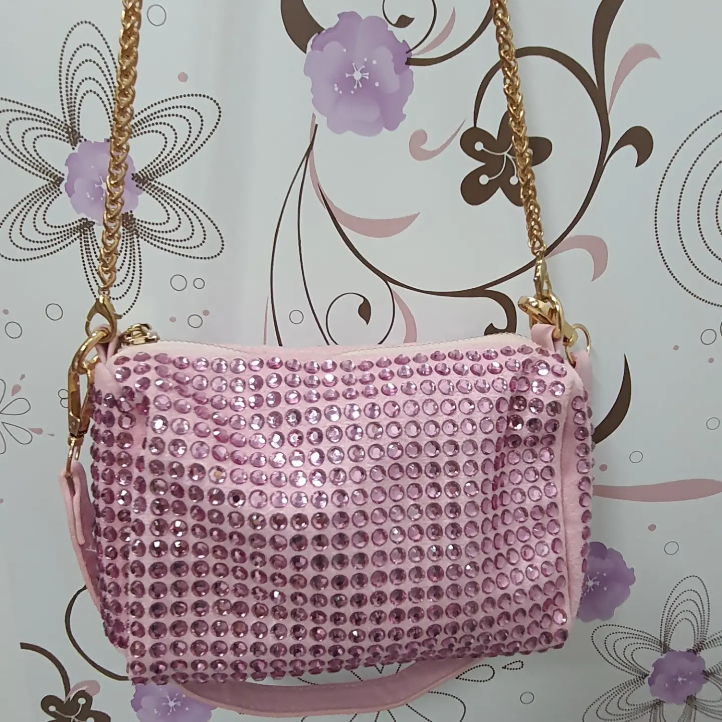 Bolsa lateral pequena com brilho.